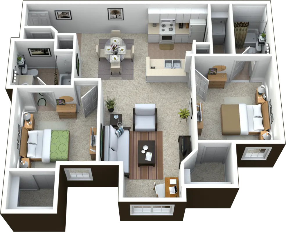 Pinnacle Cove Apartments feature a wide variety of spacious 1, 2, 3 and 4 bedroom apartment homes featuring three full bathrooms. Whether you want to relax by our resort style pool or workout on our brand new vita course, Pinnacle Cove is sure to have something for you.